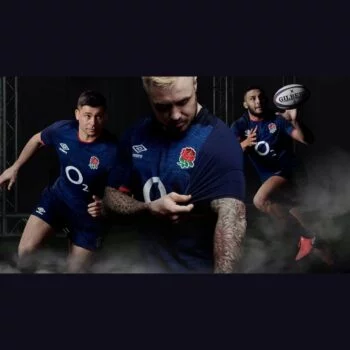 In their first English Rugby Union kit, has mixed classic Englandstyle with modern aesthetics. This official jersey dons a subtle mixed pattern and paneled construction with reinforced seams over the famous England white. These features along with the polyester fabric ensure durability and ease of movement, making this jersey a great choice for a day on the pitch or in the stands. An iconic England rose and Um-bro badge on the front, red trim on the inner-sleeves and front collar and a St George’s Cross at the nape of the neck finish the design.