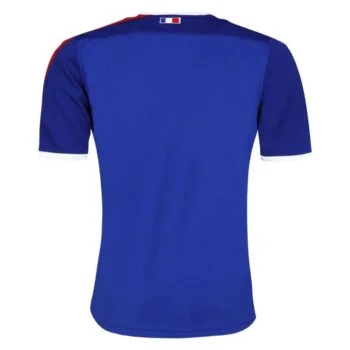 Comfort and strength are the essence of this modern jersey of the French National Rugby team. Designed by one of the world’s most prestigious brands, Le Coq Sportif, with the athlete’s well-being in mind. Its high quality fabric and fitted cut give it a toughness and flair that allow it to perform both on and off the field. The blue body is accented by a white collar and white cuffs with a ‘FRANCE RUGBY’ embossed inscription. A red and white stripe fabric insert runs down the left shoulder and sleeve. Finished with embroidered French rooster and LCS logos on the chest, French flag at nape of the collar, and “Notre maillot, notre histoire, notre pays” inside the collar, this jersey embodies the rich history and pride of the team, flourishing since 1906