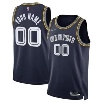 Designed with elements from the Memphis Grizzlies’ storied history, this 2021/22 City Edition jersey celebrates the team’s one-of-a-kind legacy – built with heart, grit and grind – that stretches from British Columbia to Tennessee. The navy and gold colorway, along with the arched team wordmark, blends the first Memphis redesign in 2004 with bear claw accents from the inaugural year in Vancouver. The stylized “MEM” mark, introduced in 2018, is patterned through the neck and arms in a design similar to both the original Vancouver jersey and the current Statement Edition jersey.