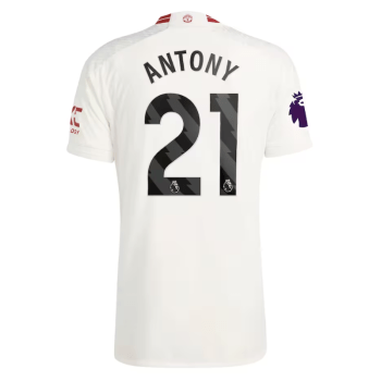 Prepare to embark on a thrilling journey of football fervor with the Manchester United Antony 2023/24 Third Player Jersey, elegantly presented in a pristine shade of white. As you don this jersey, a surge of exhilaration and connection will envelop you, bridging the gap between you and the heart of the Red Devils’ legacy.