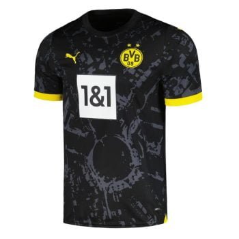 The Borussia Dortmund 2023/24 Away Custom Jersey in black is an essential piece of fan gear for match day. It features a bold design and team-specific details that allow supporters to celebrate the iconic Bundesliga club in style. This jersey, equipped with moisture-wicking dryCELL technology, offers a looser fit around the chest and shoulders than an authentic jersey, ensuring a comfortable and lightweight wear throughout the entire season.