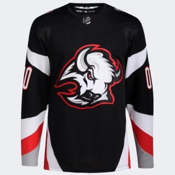 - Sleek Black: The black jersey offers a sleek and distinctive look to represent the Sabres.