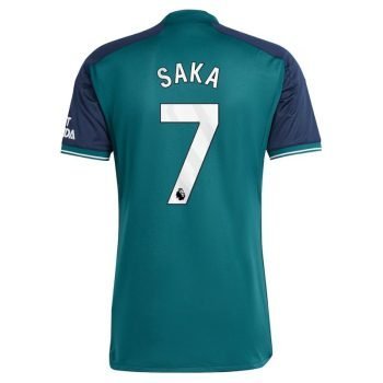 Get ready to cheer on the Gunners and support Bukayo Saka with the Arsenal Bukayo Saka 2023/24 Third Player Jersey in Striking Green!