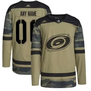 To create your personalized Carolina Hurricanes Custom Practice Jersey in the camo military design, simply enter your desired name or text in the designated field during the ordering process. This jersey allows you to stand out as a dedicated Hurricanes fan while showcasing your individual style.