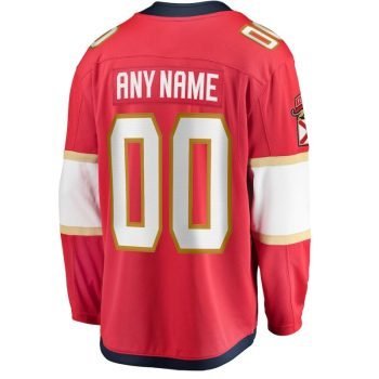 Celebrate your Florida Panthers fandom with this personalized Home Breakaway Custom Jersey in red. You can make it uniquely yours by following these steps: