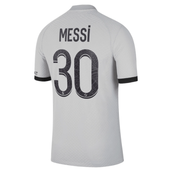 Show off your love for Lionel Messi and Paris Saint-Germain by grabbing this 2022/23 Away Vapor Match Authentic Player Jersey. This jersey features Dri-FIT and Vaporknit fabric technology that work together to wick away moisture, keeping you dry and comfortable all day long. Complete with embroidered Paris Saint-Germain graphics, it lets you look and feel like the real deal as you cheer on your favorite player.