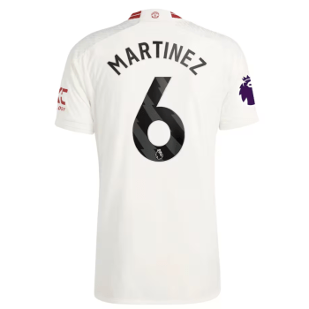 Prepare to immerse yourself in the vibrant world of football fandom with the Manchester United Lisandro Martínez 2023/24 Third Player Jersey, elegantly crafted in a pristine shade of white. As you slip into this jersey, a sense of connection and excitement will envelop you, bringing you closer to the Red Devils and the heart of the game.