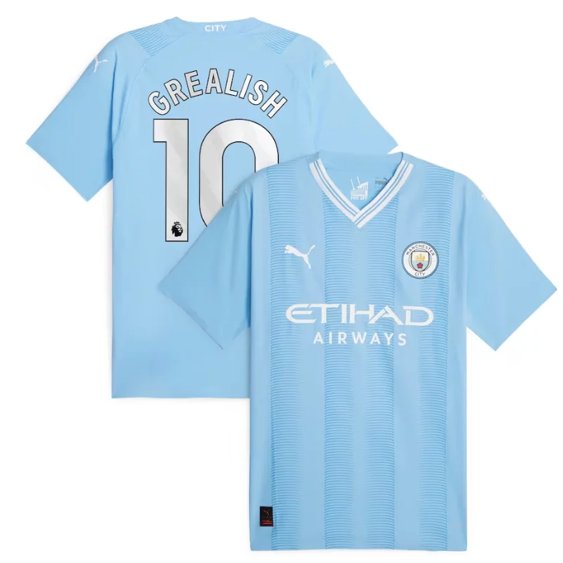Manchester City Home Shirt 2023-24 with Grealish 10 printing Jersey – Sky Blue
