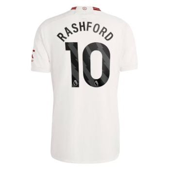 Get ready to support Marcus Rashford and the Red Devils with the Manchester United Marcus Rashford 2023/24 Third Player Jersey in Crisp White!