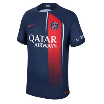 This jersey is identical to the one worn by PSG players during matches. Paying homage to the classic PSG design, the 2023/24 home kit updates the early 2000s jersey with a contemporary twist. The famous red and white stripes of Paris Saint-Germain fade into the blue of the jersey and are inspired by the rays of light that make up the beauty of Paris. The tricolor is also on the shirt and underlines the club’s position as the country’s leading football club, whose influence goes far beyond the French capital. Dri-FIT ADV technology combines authentic details and lightweight fabric with quick-drying to provide maximum freshness and comfort during exercise. The GOAT badge on the sleeve is included with the Players or Custom flocking option.